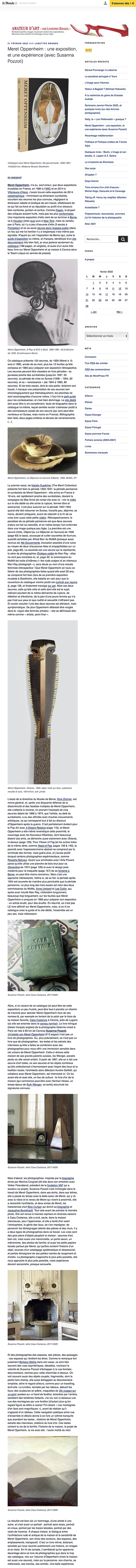 AMATEUR D'ART Lunettes Rouges blog LE MONDE : Meret Oppenheim: une exposition et une expérience (avec Susanna Pozzoli)