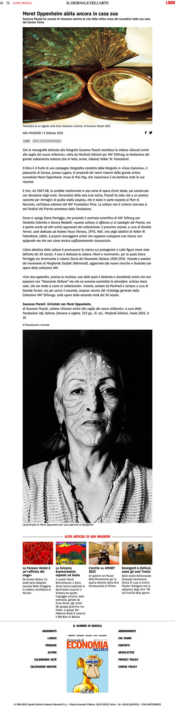 IL GIORNALE DELL'ARTE Ada Masoero: Meret Oppenheim abita ancora a casa sua
