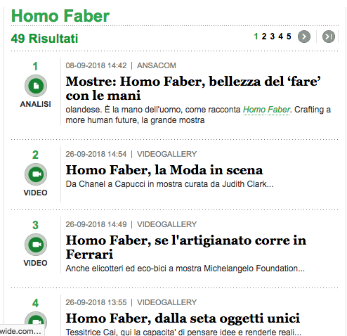 Homo Faber, le botteghe dei sogni fatti a mano. Article by Francesca Gugliotta published on LA REPUBBLICA, Italy